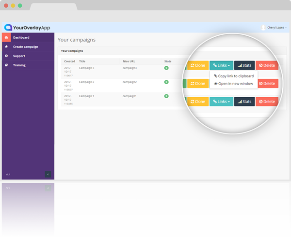 Simply enter an external site URL and you can add these overlays to any website. This is perfect for affiliate marketing.